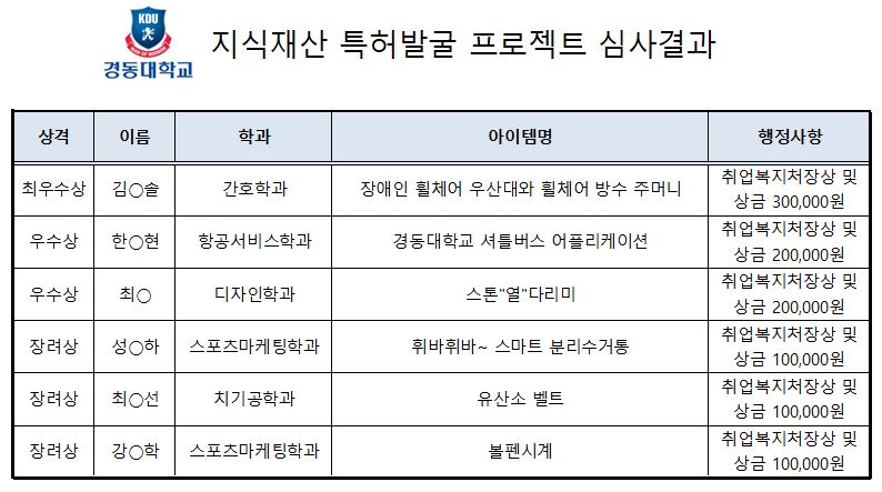 내부 심사 및 변리사 자문 결과 최종 선발된 학생들 축하합니다.